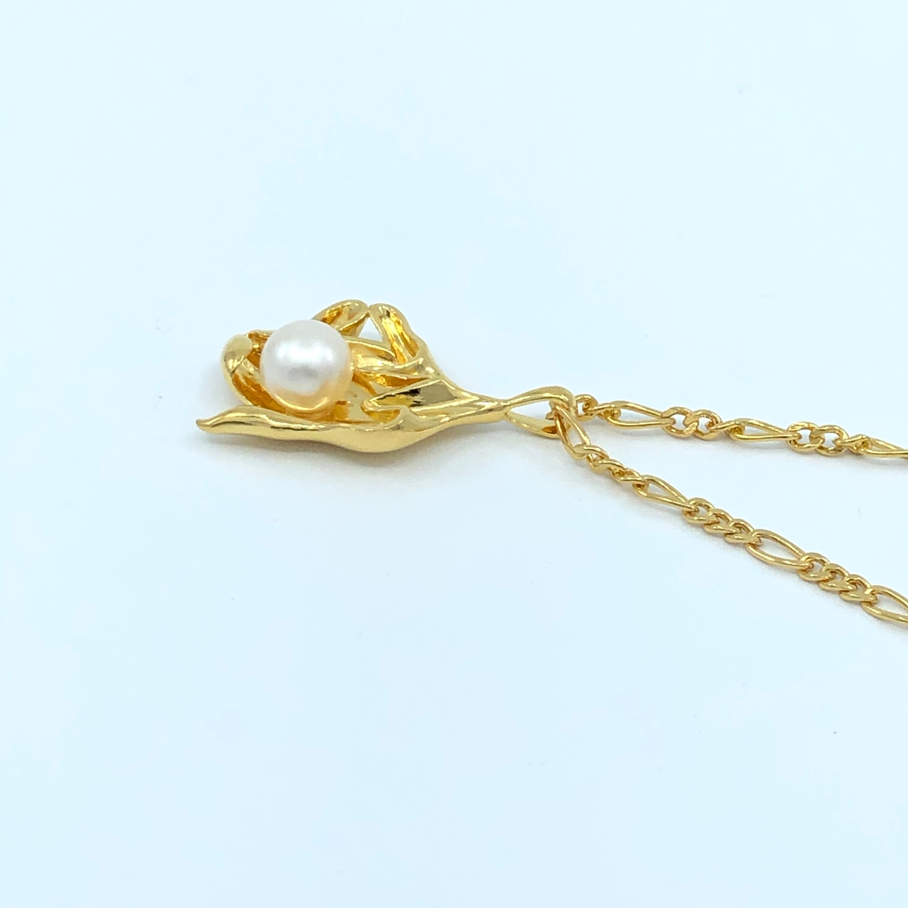 素材: SV925+Fresh Water Pearl+18K Yellow Gold Plating (No-nickel)