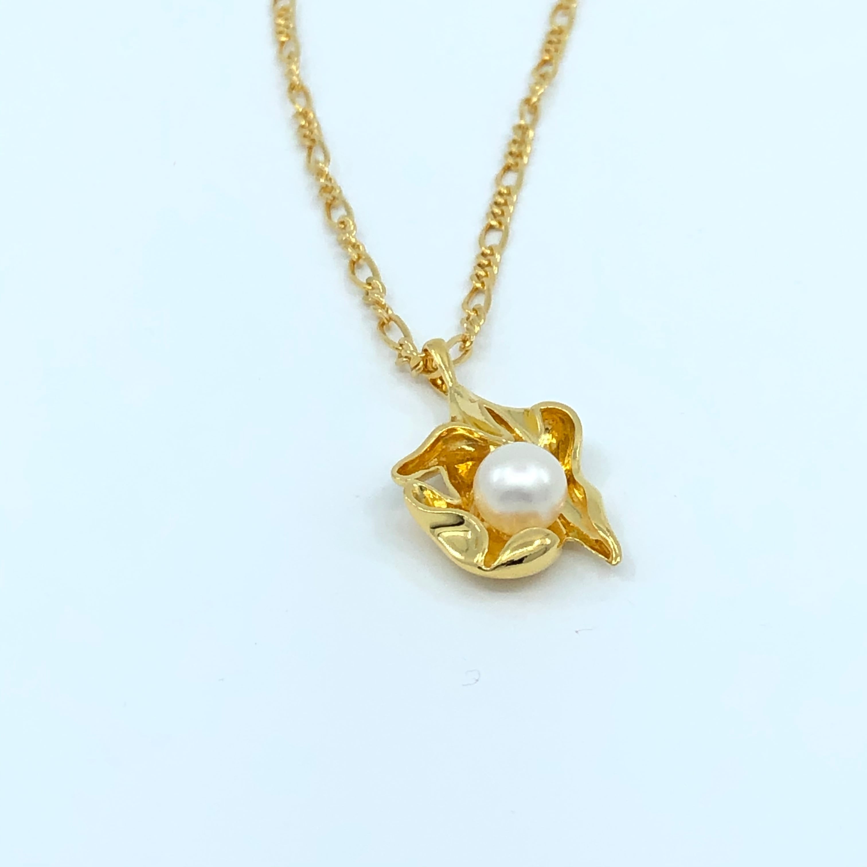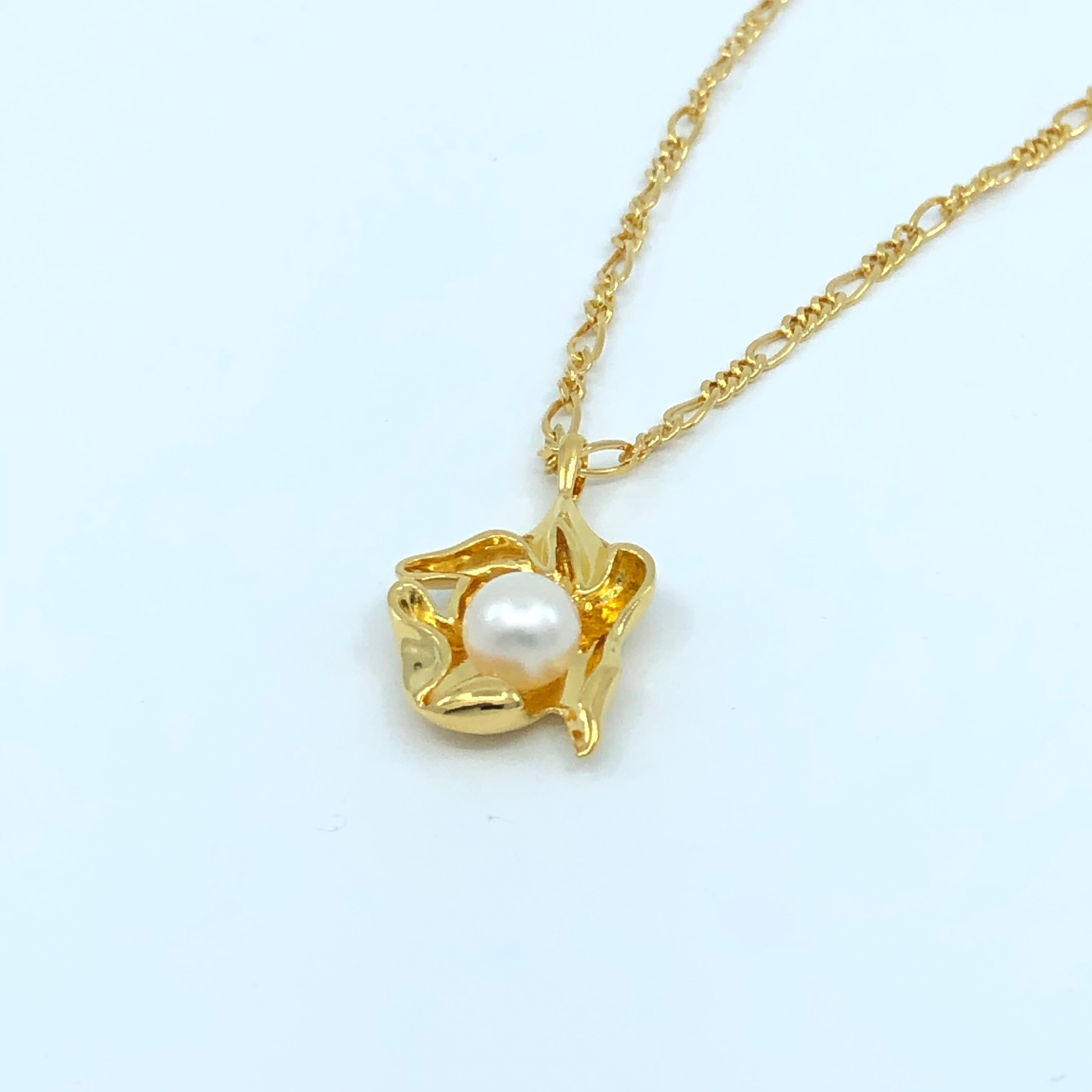 こちらはピアスとセットアップのペンダントになります。センターには淡水パールをセットしています。