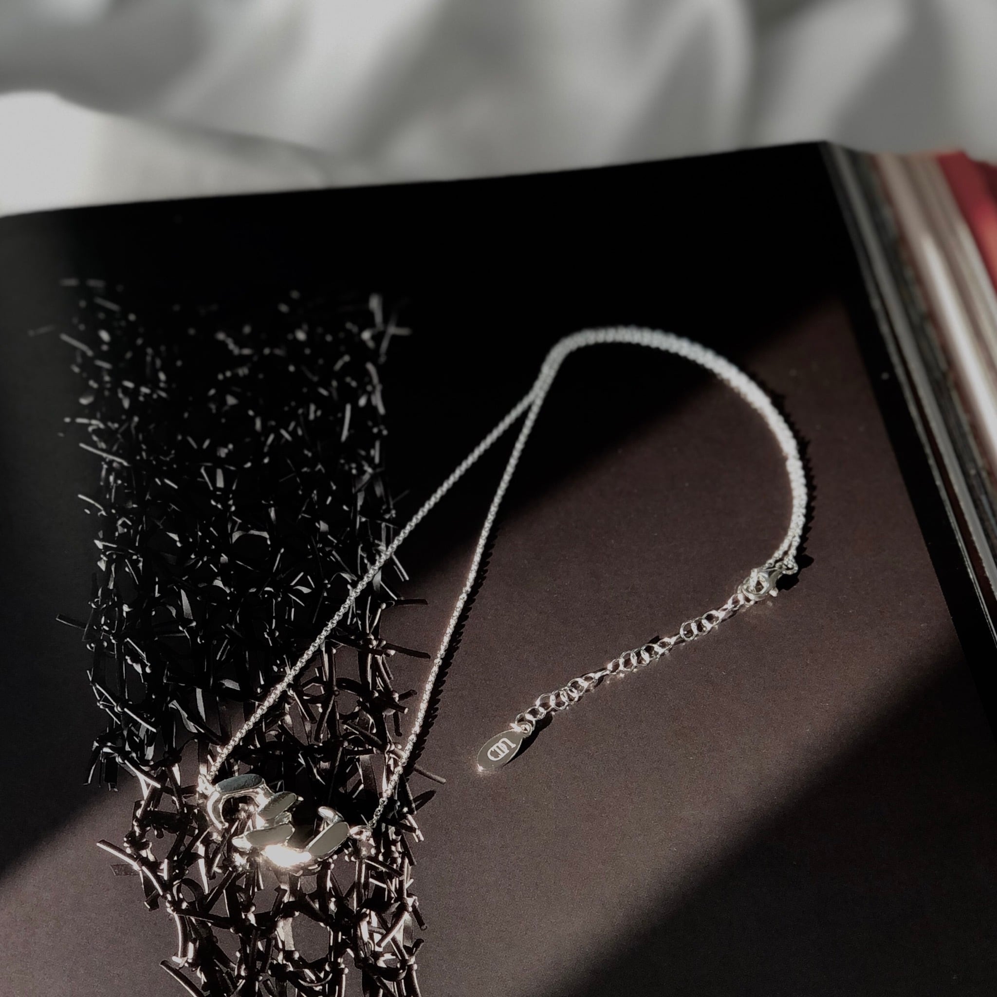 人気のレザーチョーカーシリーズから、シンプルなシルバーネックレスとして登場しました。