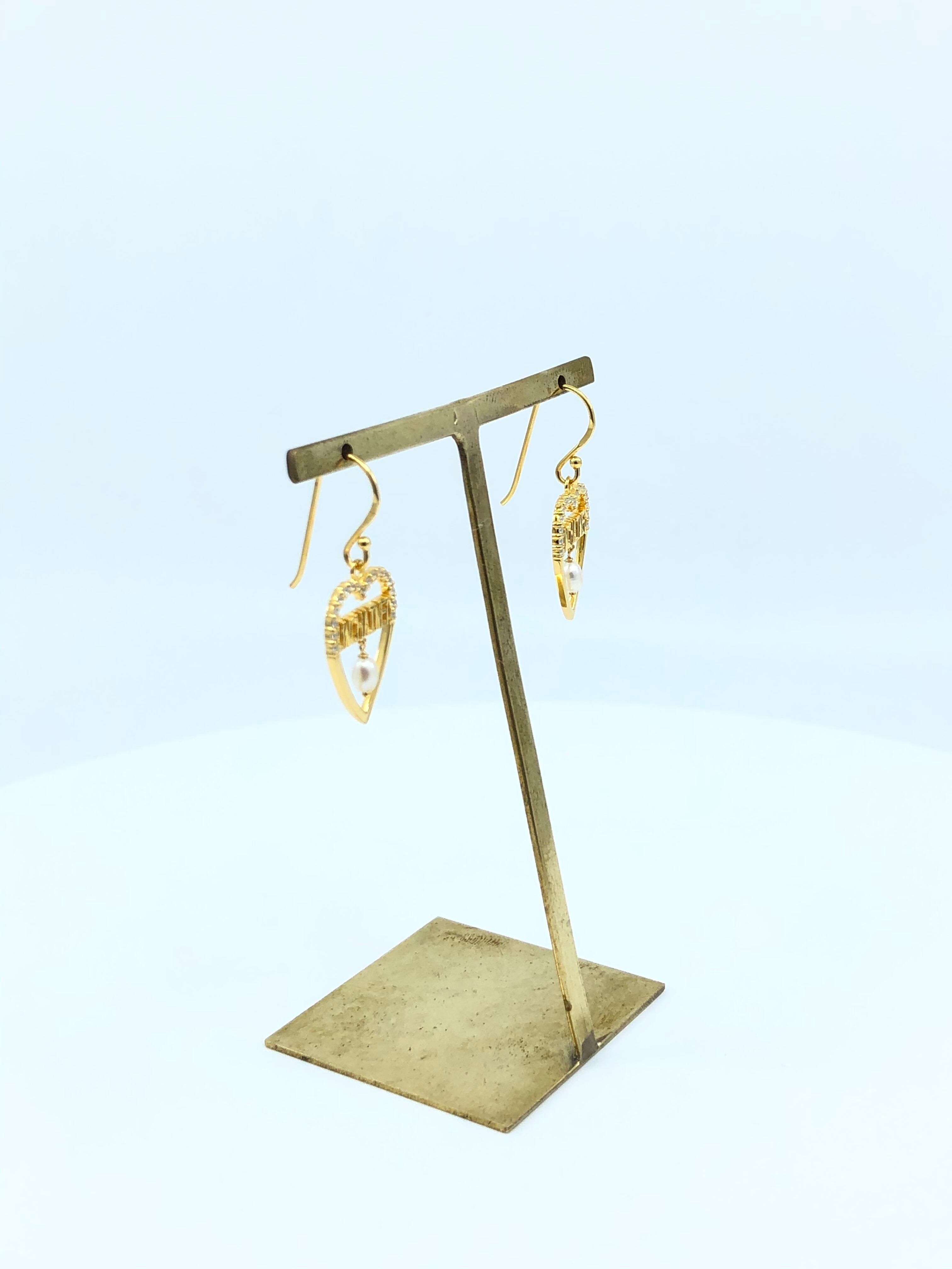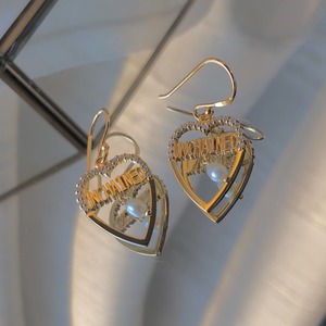 こちらのピアスはフックタイプになり、ハートパーツとパールパーツがスイングして、
