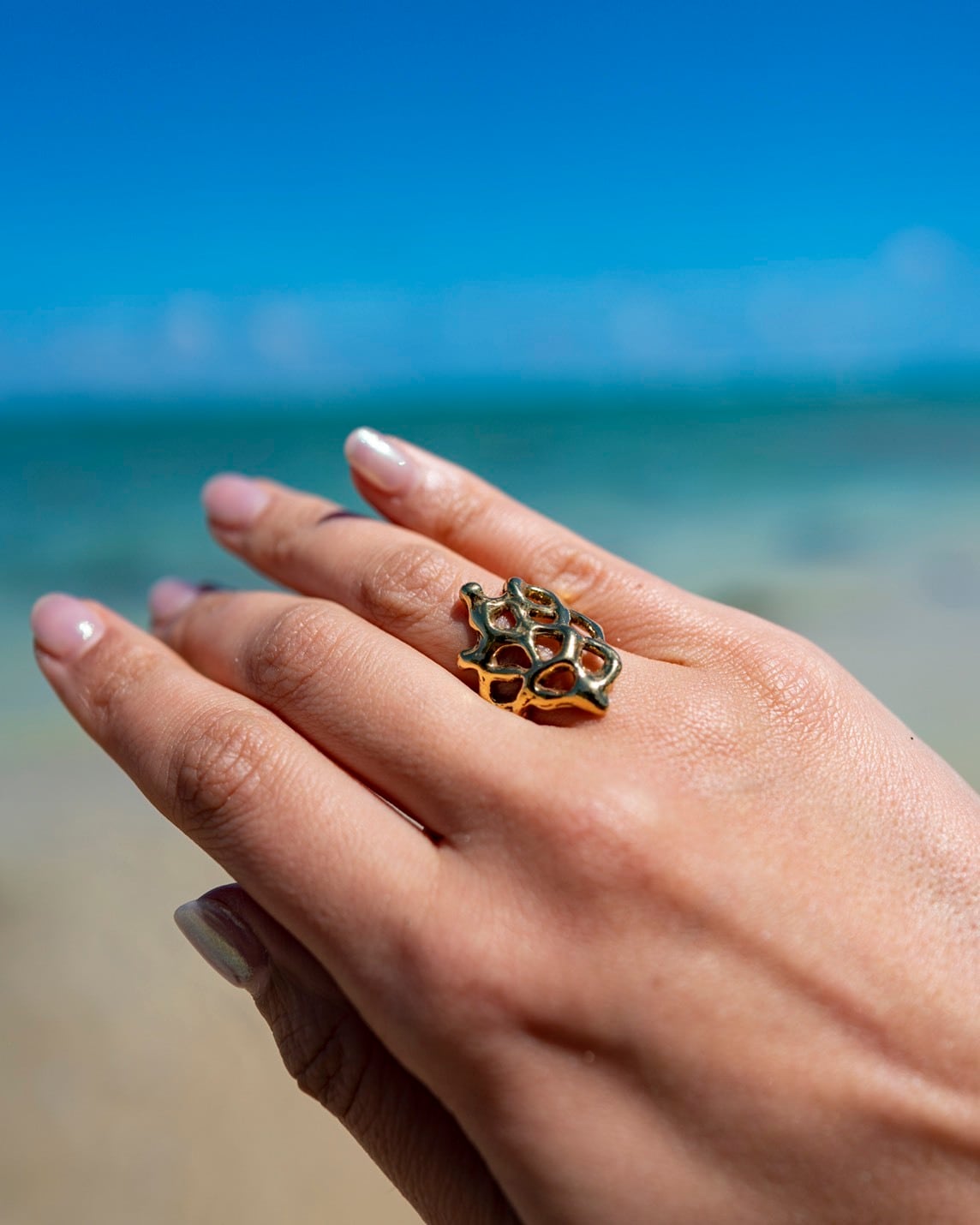 沖縄出身の聖南さんらしい、美しい海やビーチを作り、守ってきたサンゴをモチーフに