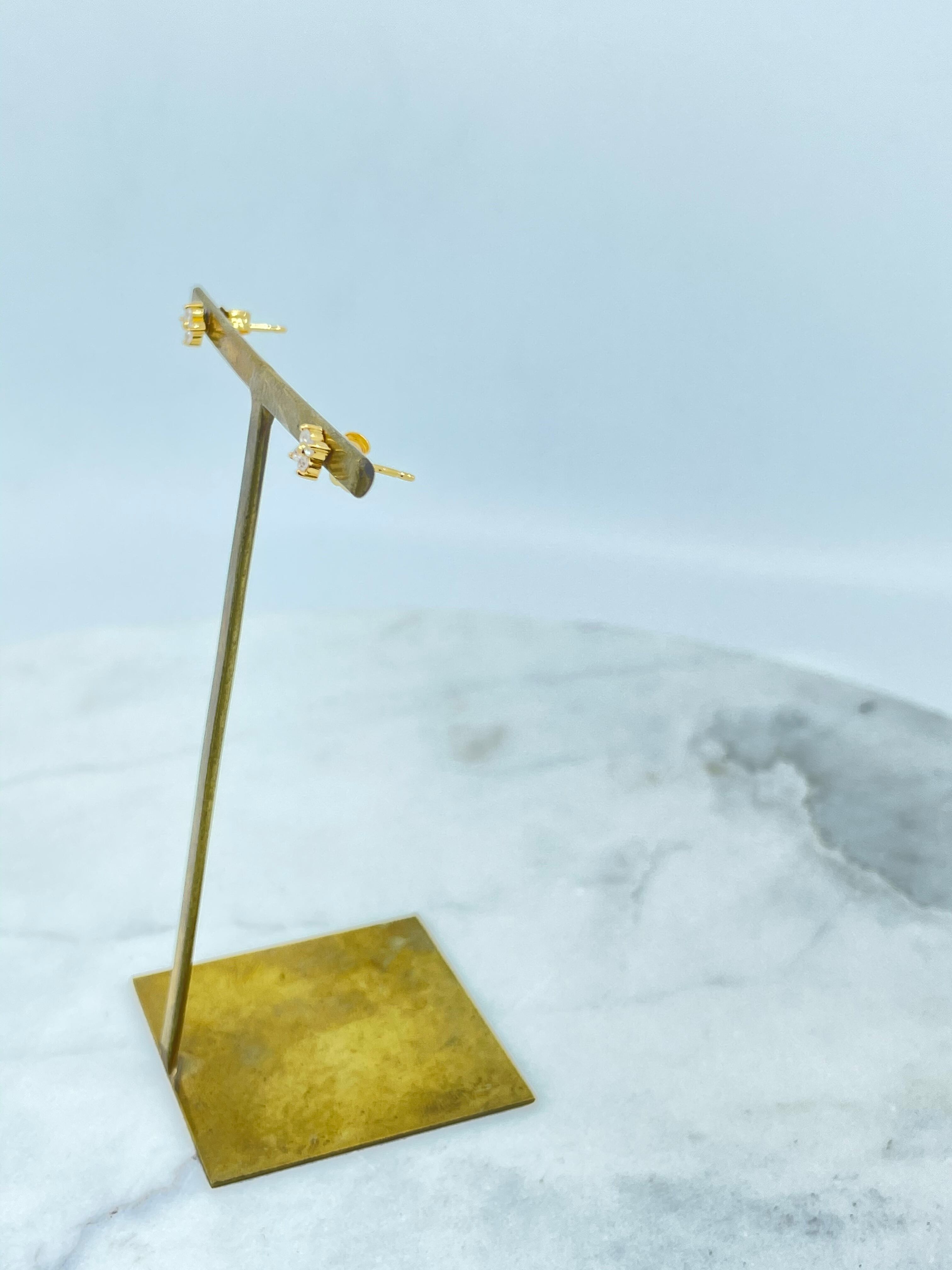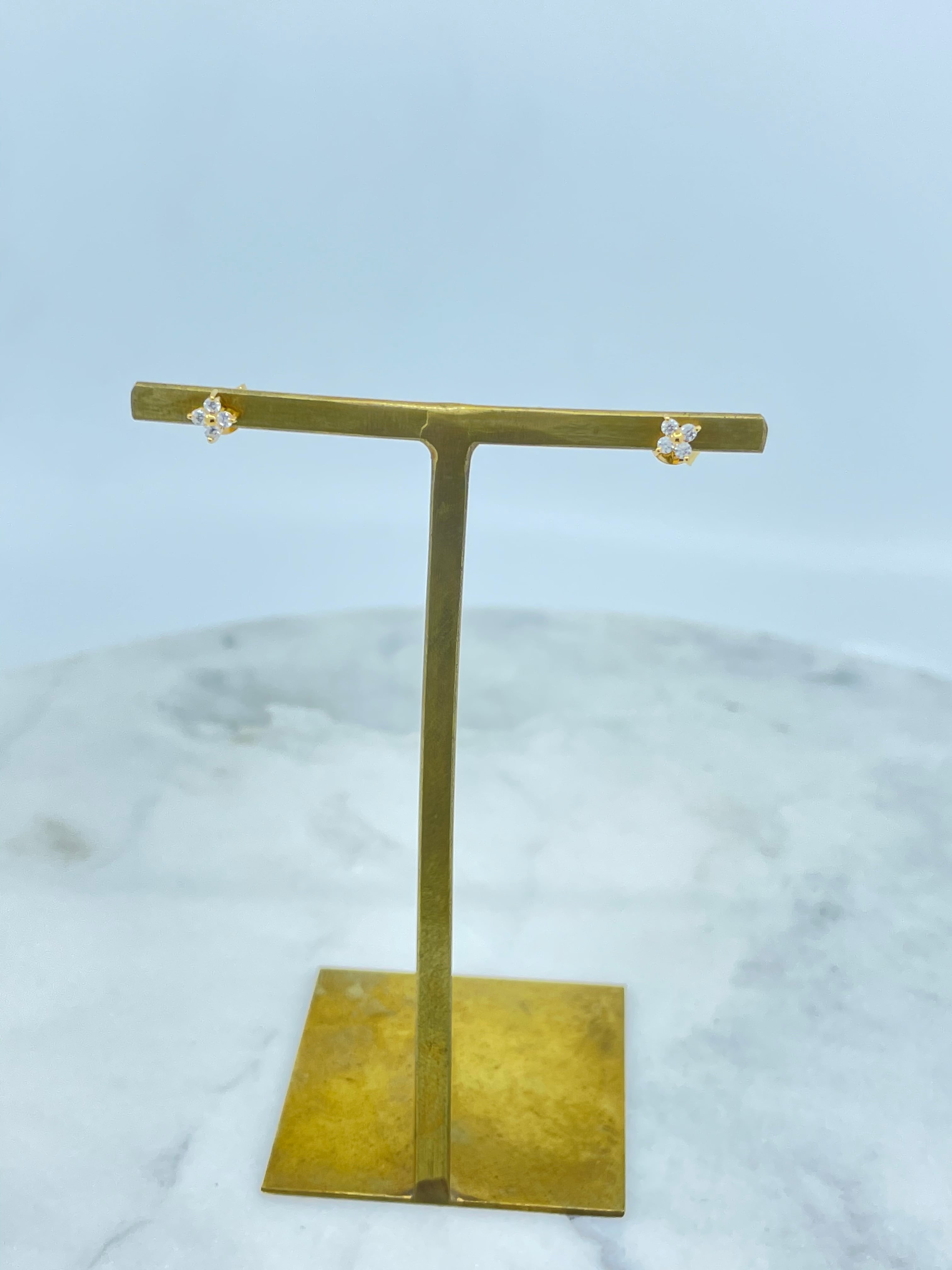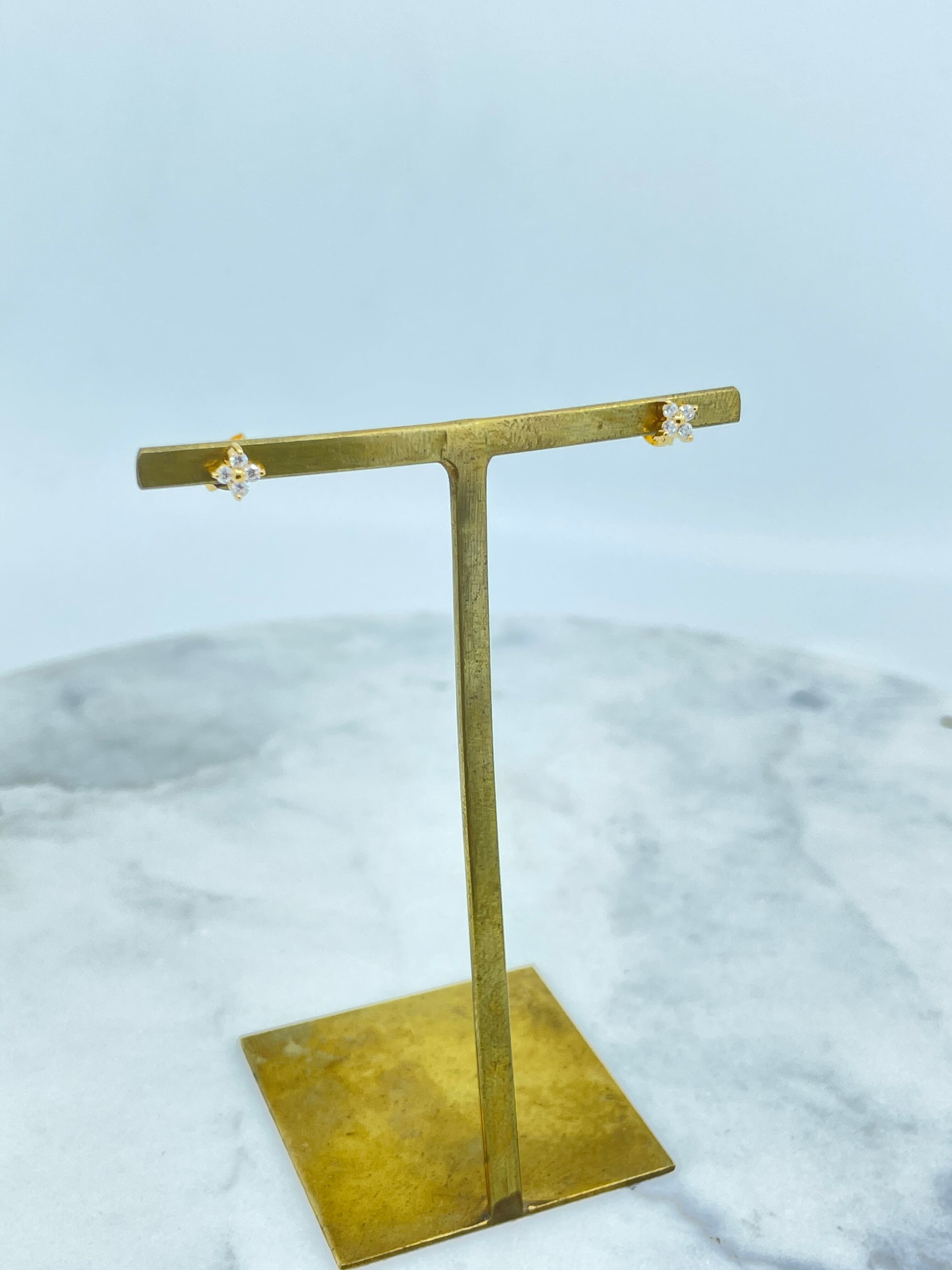 こちらのピアスは、シンプルな四葉デザインに4石のキュービックジルコニアをセッティングしています。