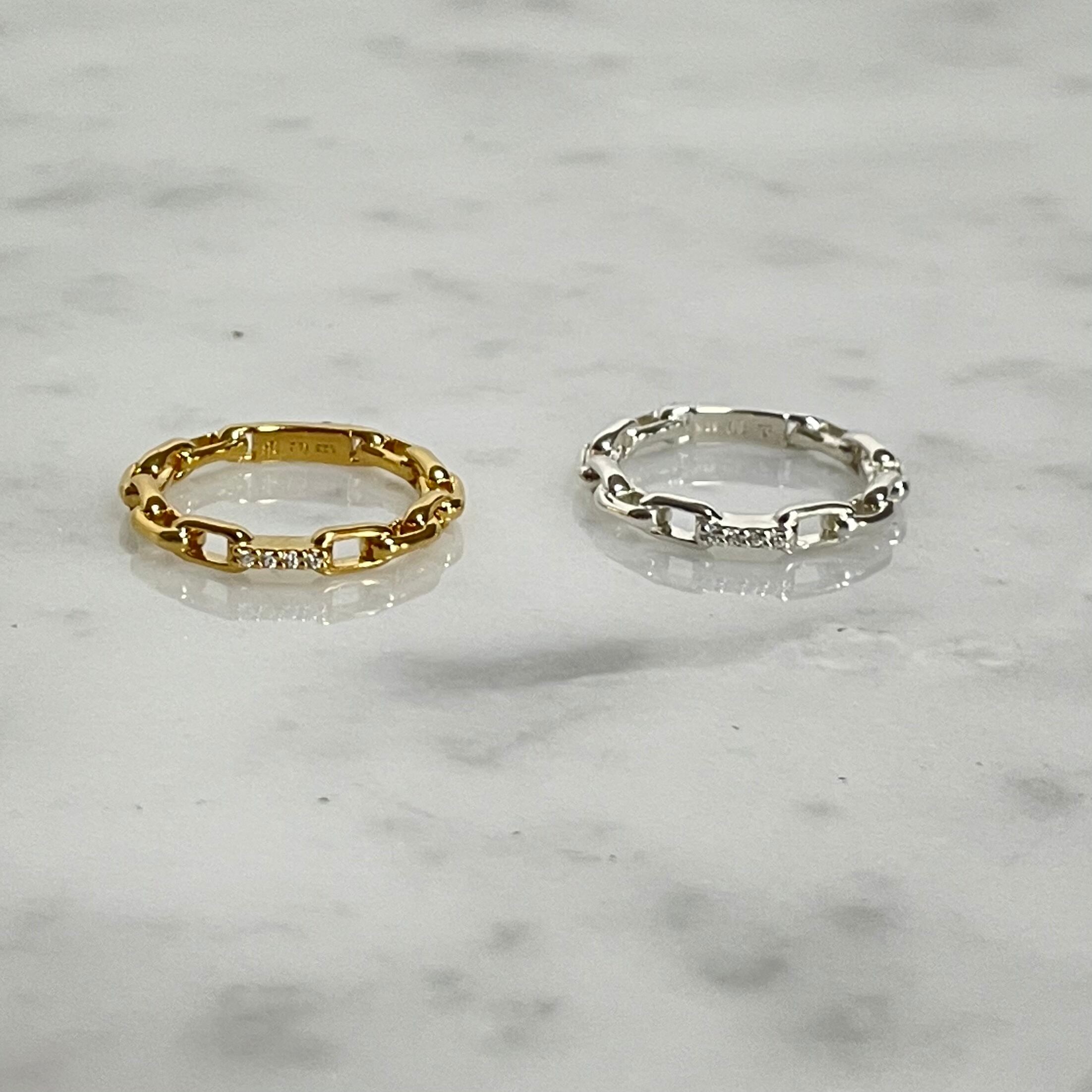UNCHAINEDらしいチェーンモチーフのシンプルなリング。