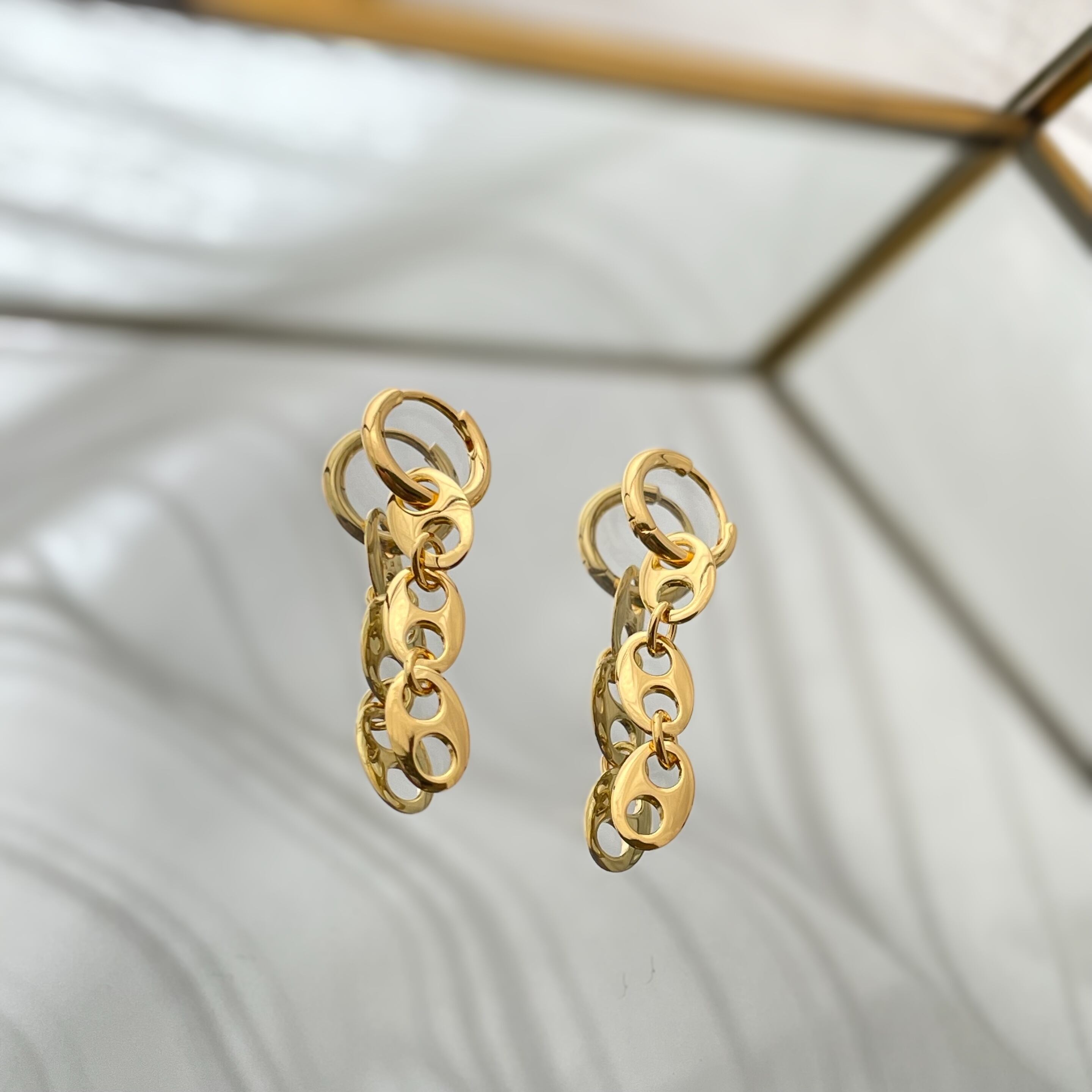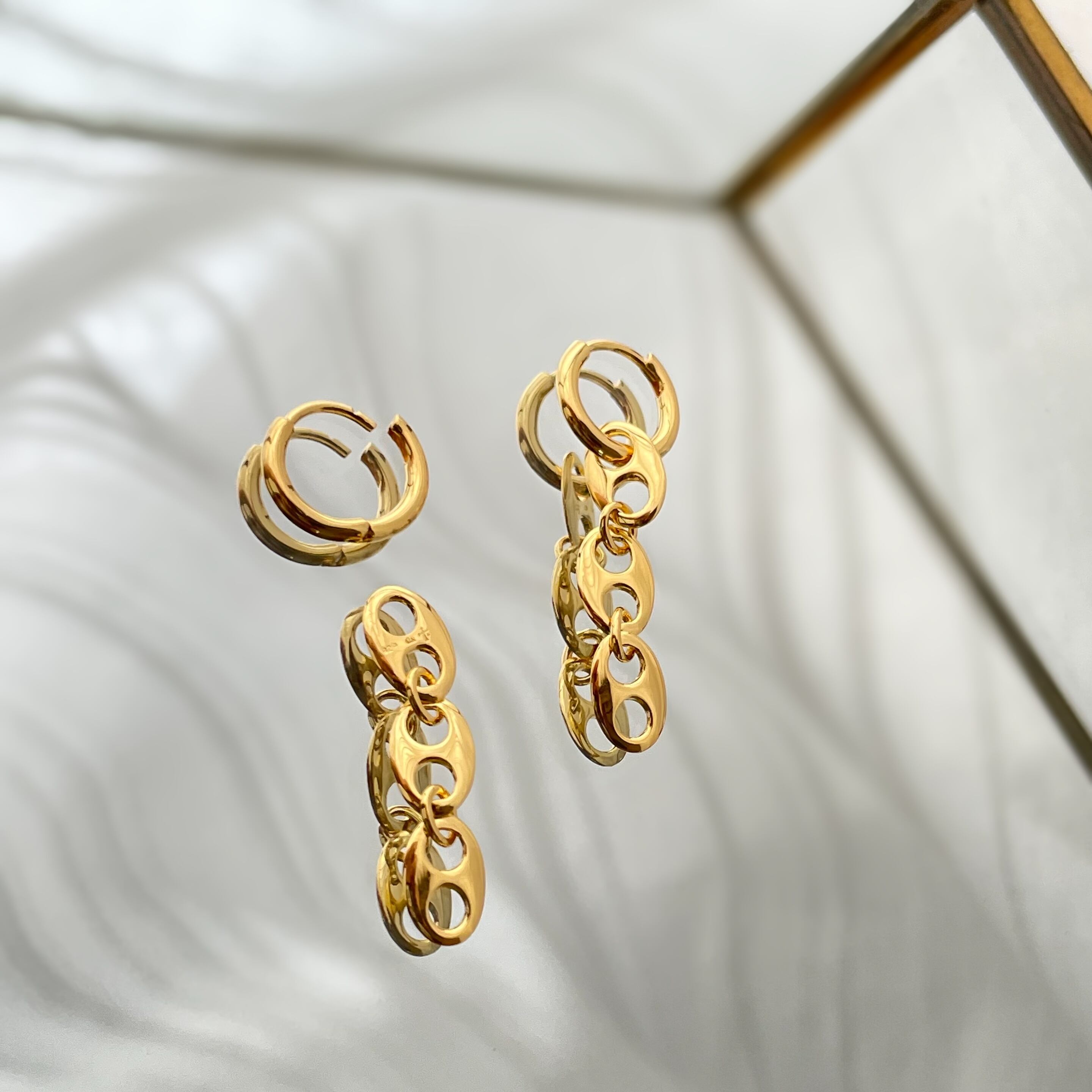 UNCHAINEDらしいチェーンを元に、力強くも美しいデザインのピアスを作ってきました。