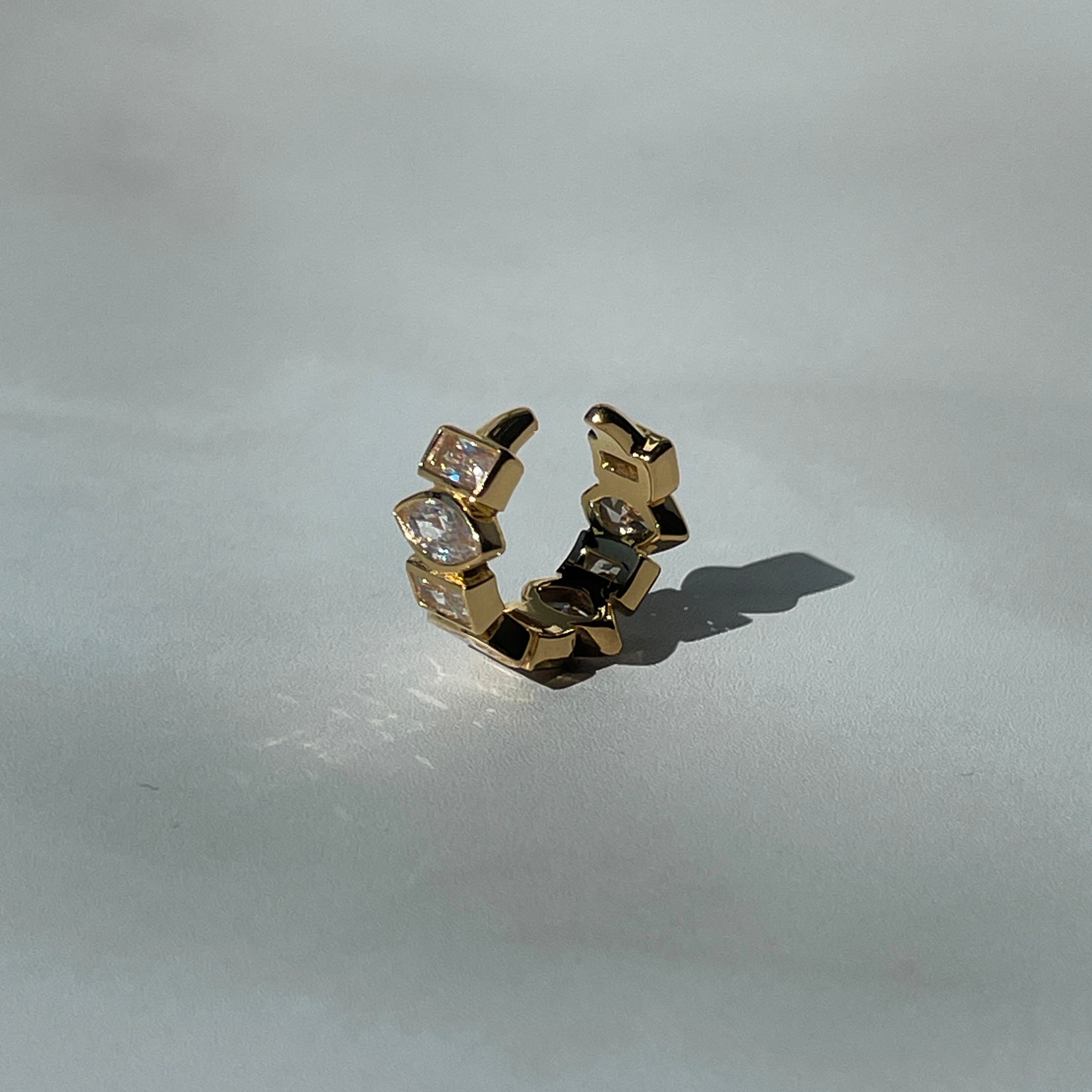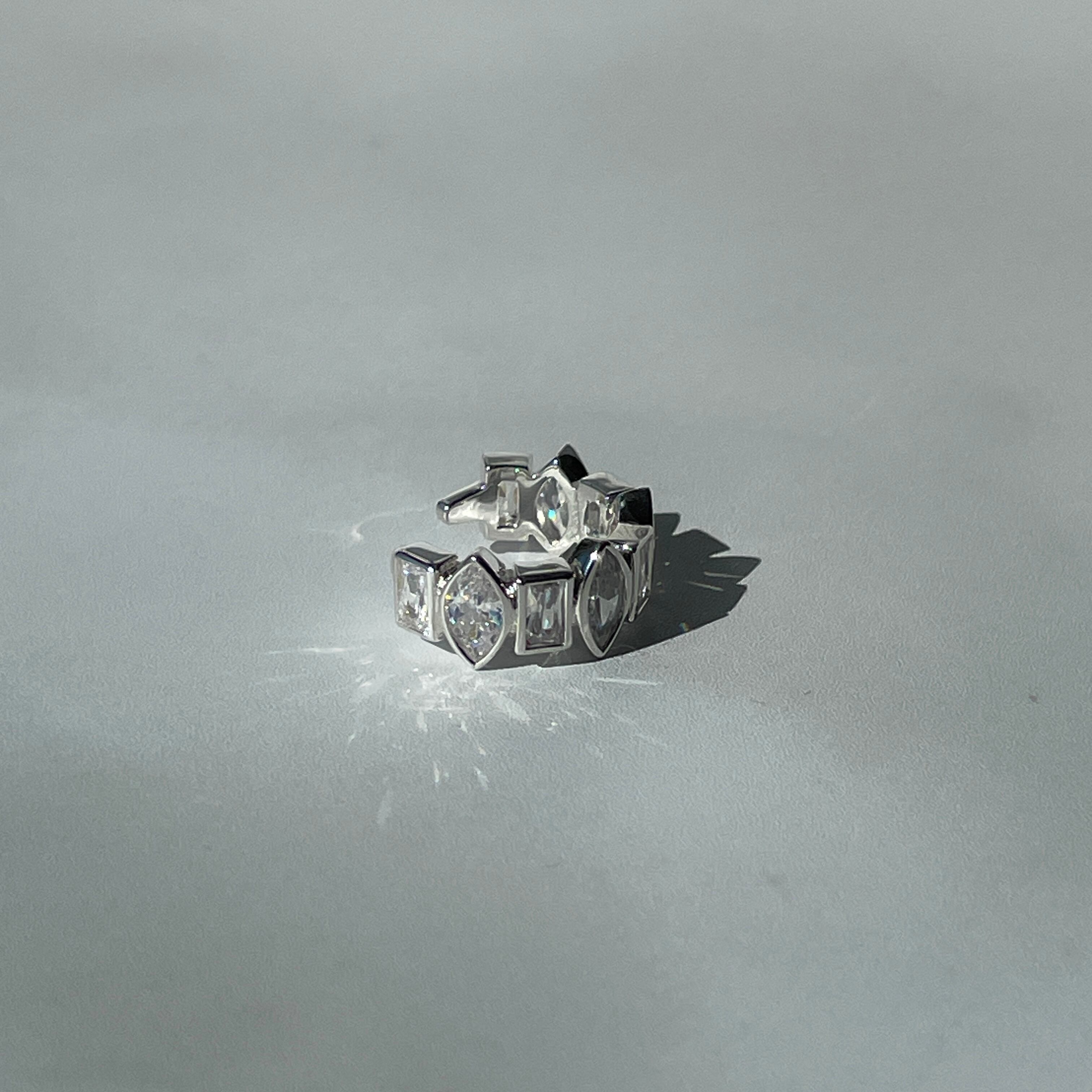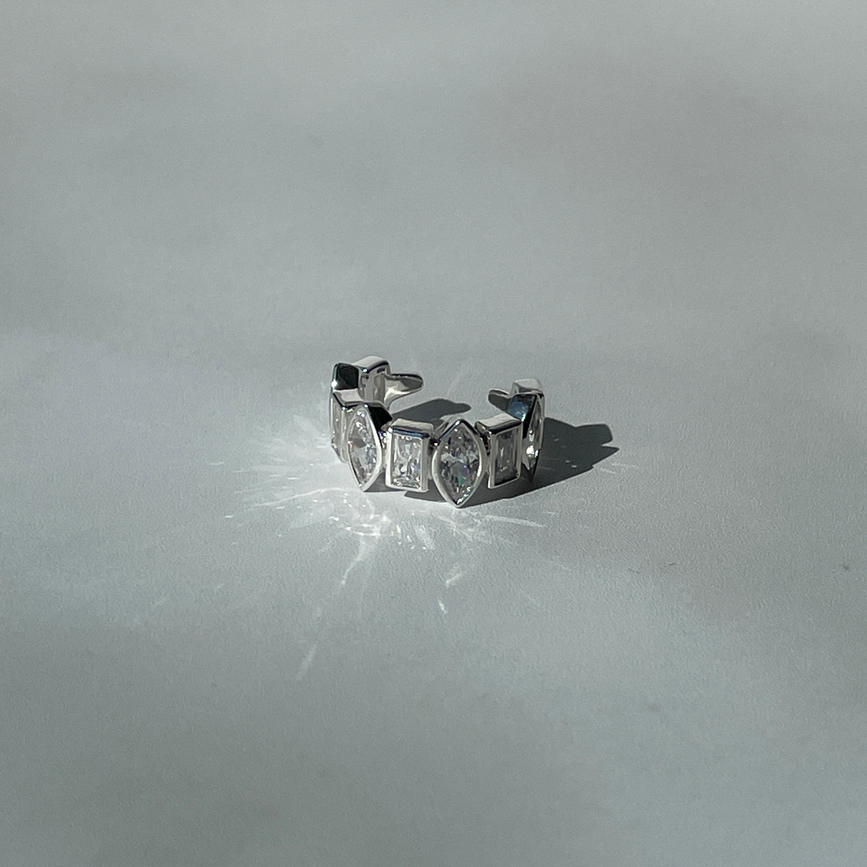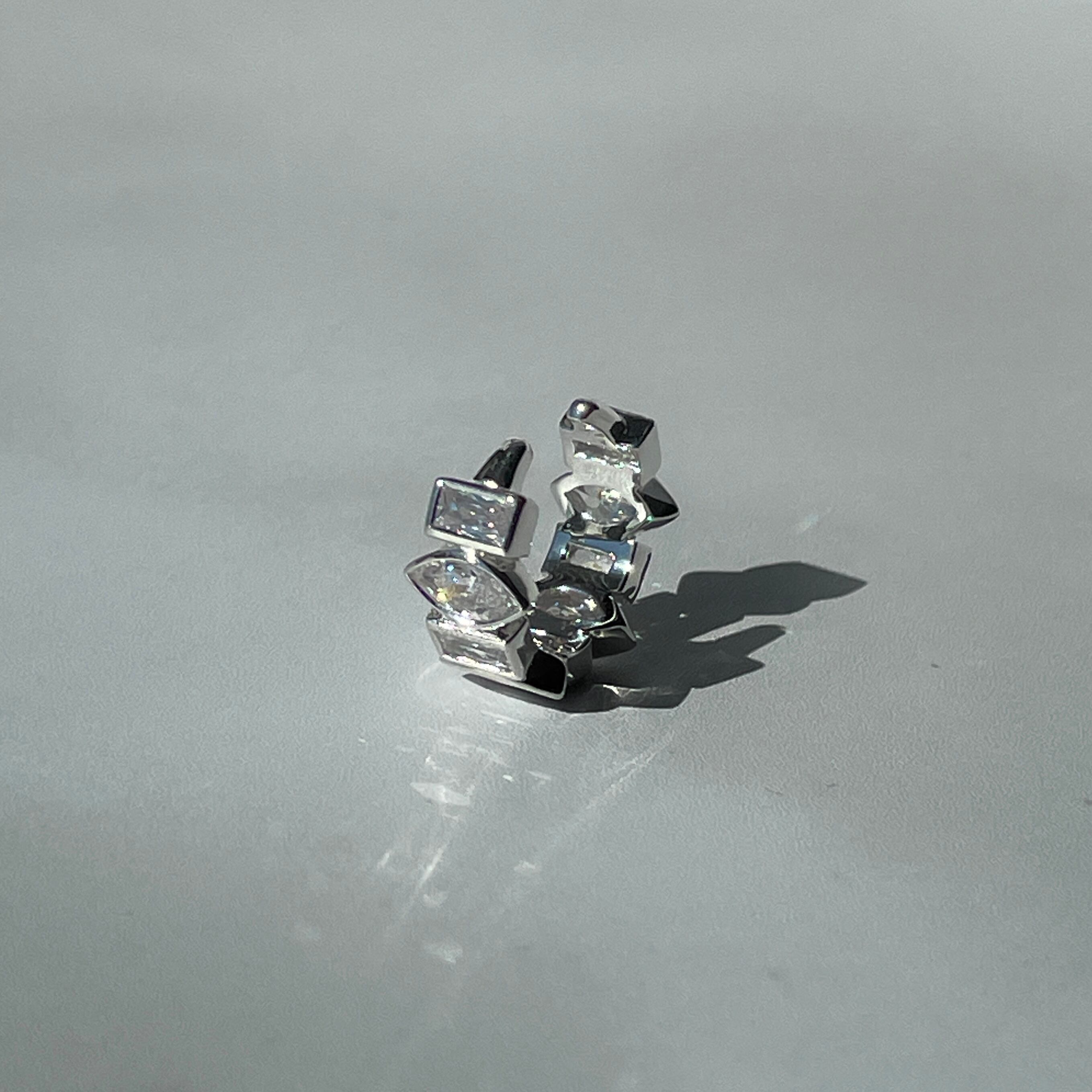 華やかさを演出するUCE-51 Sparkle EarCuff。マーキスカットとバゲットカットのキュービックジルコニアをあしらったデザインが、あなたの耳元を一層輝かせます。片耳用のイヤーカフなので、片方の耳にアクセントを加えることができます。