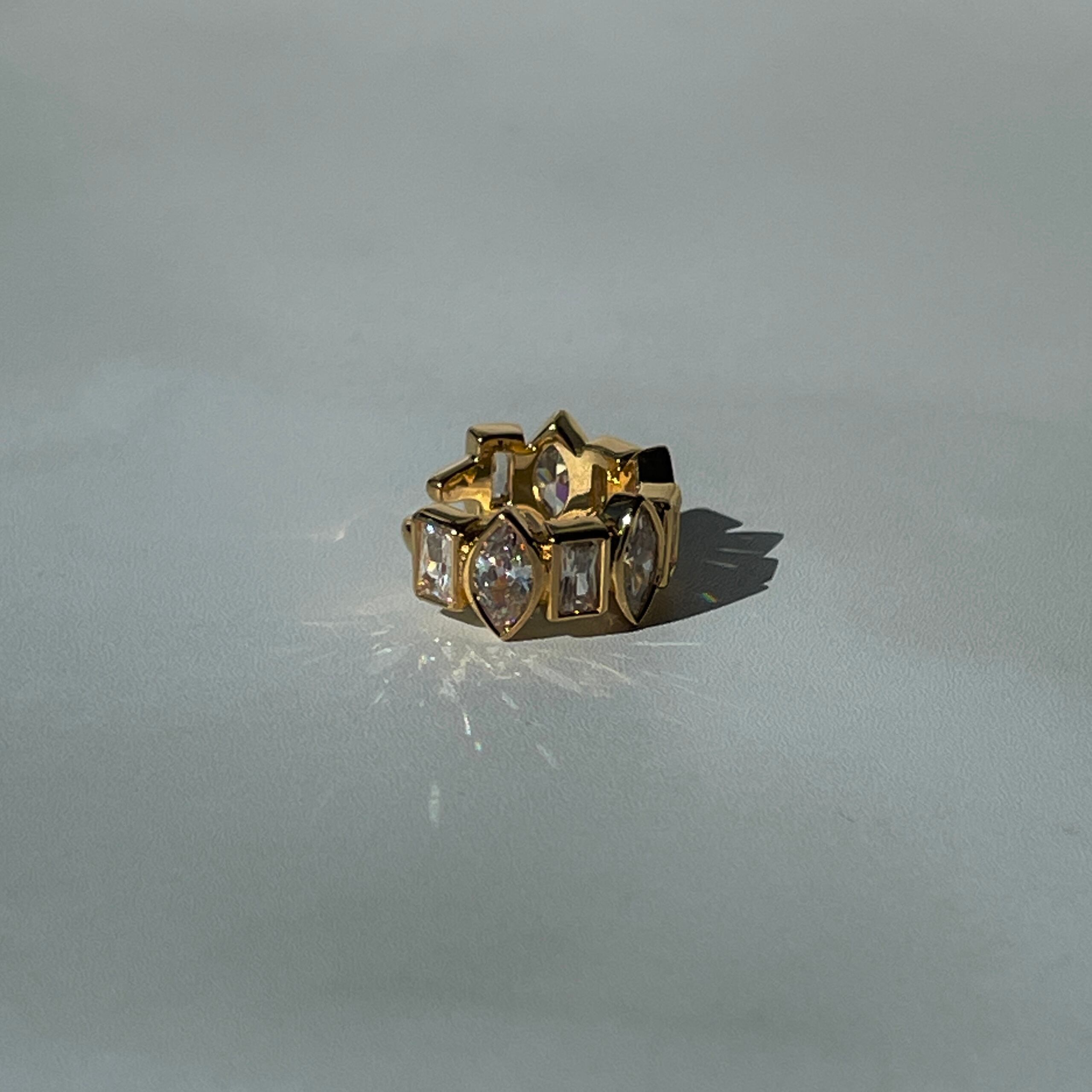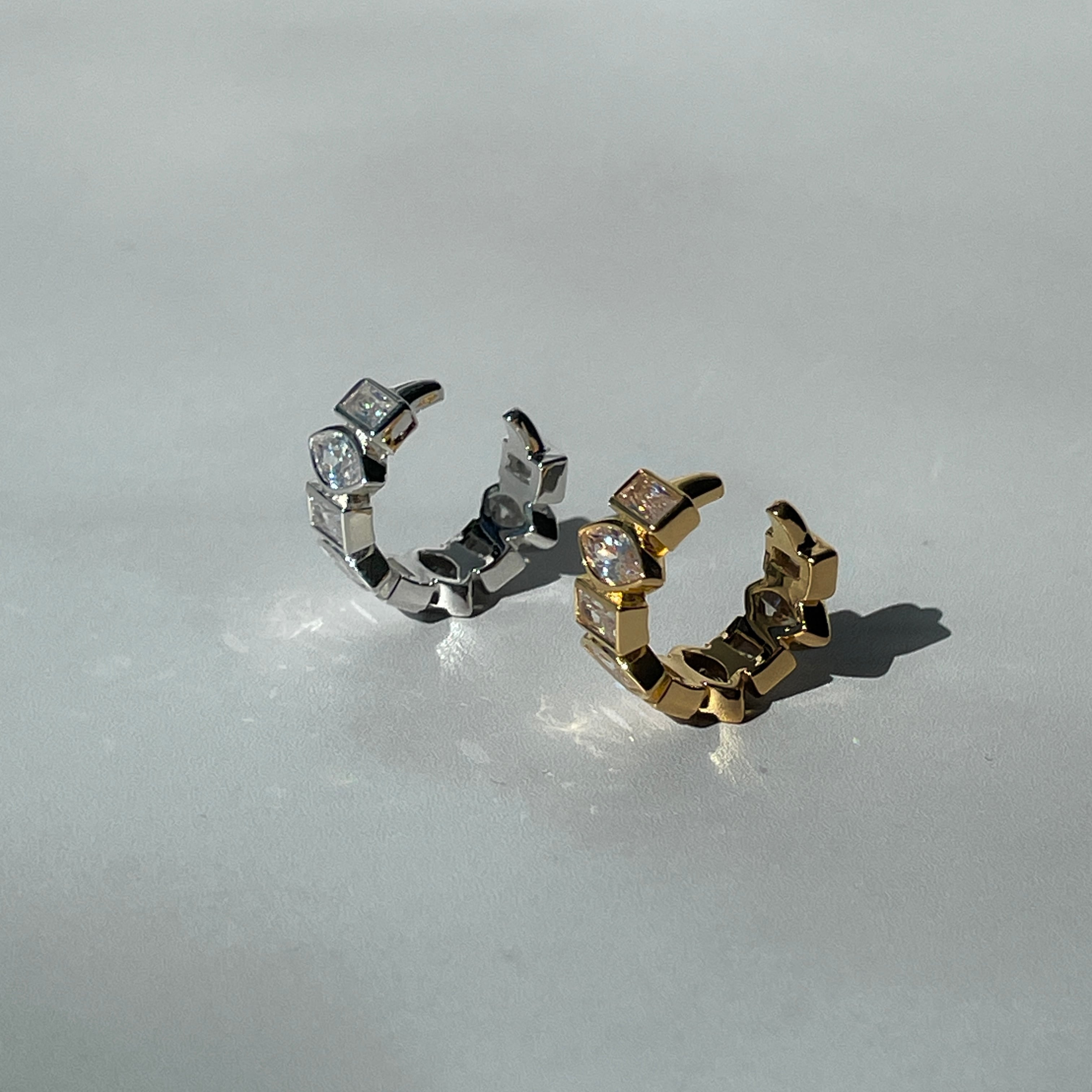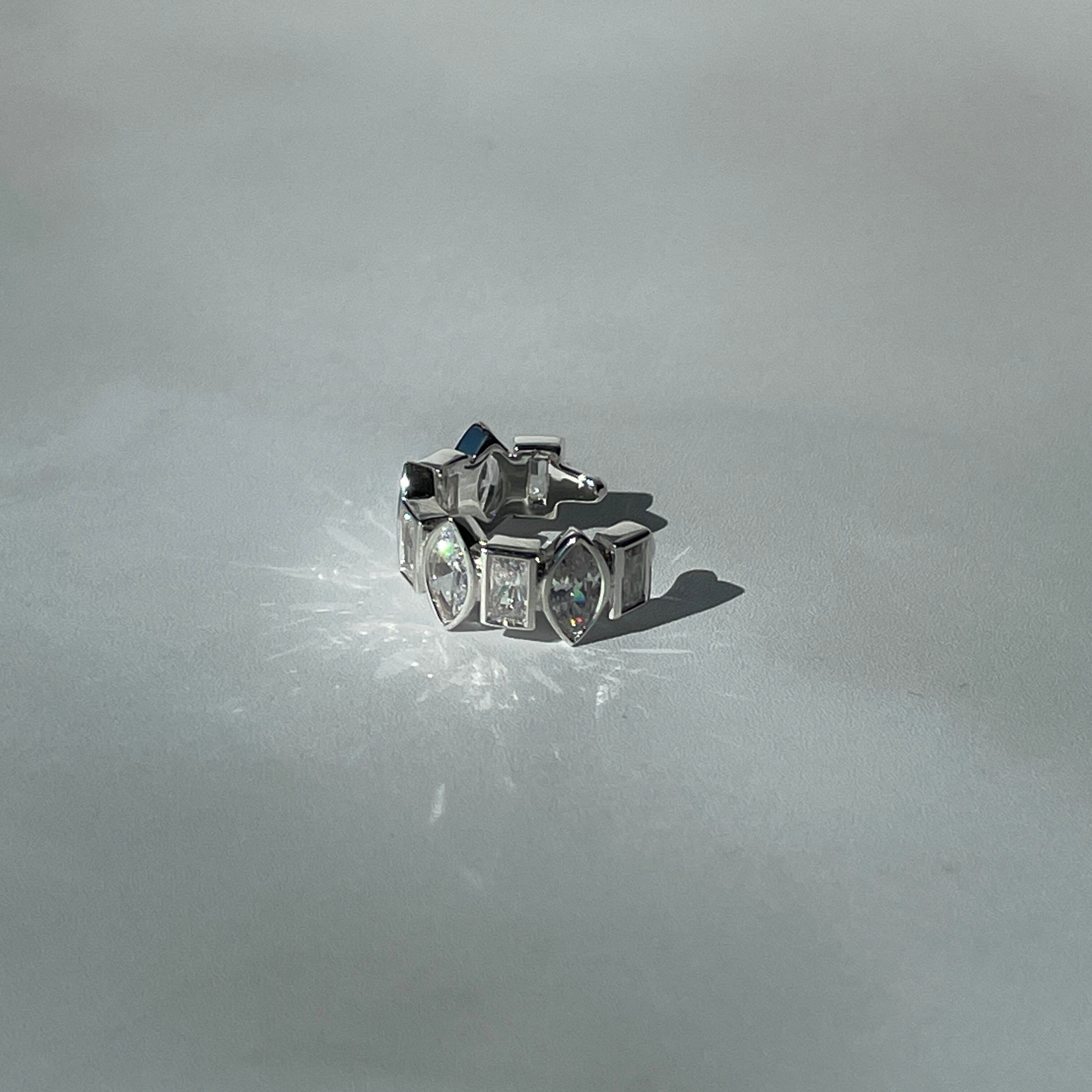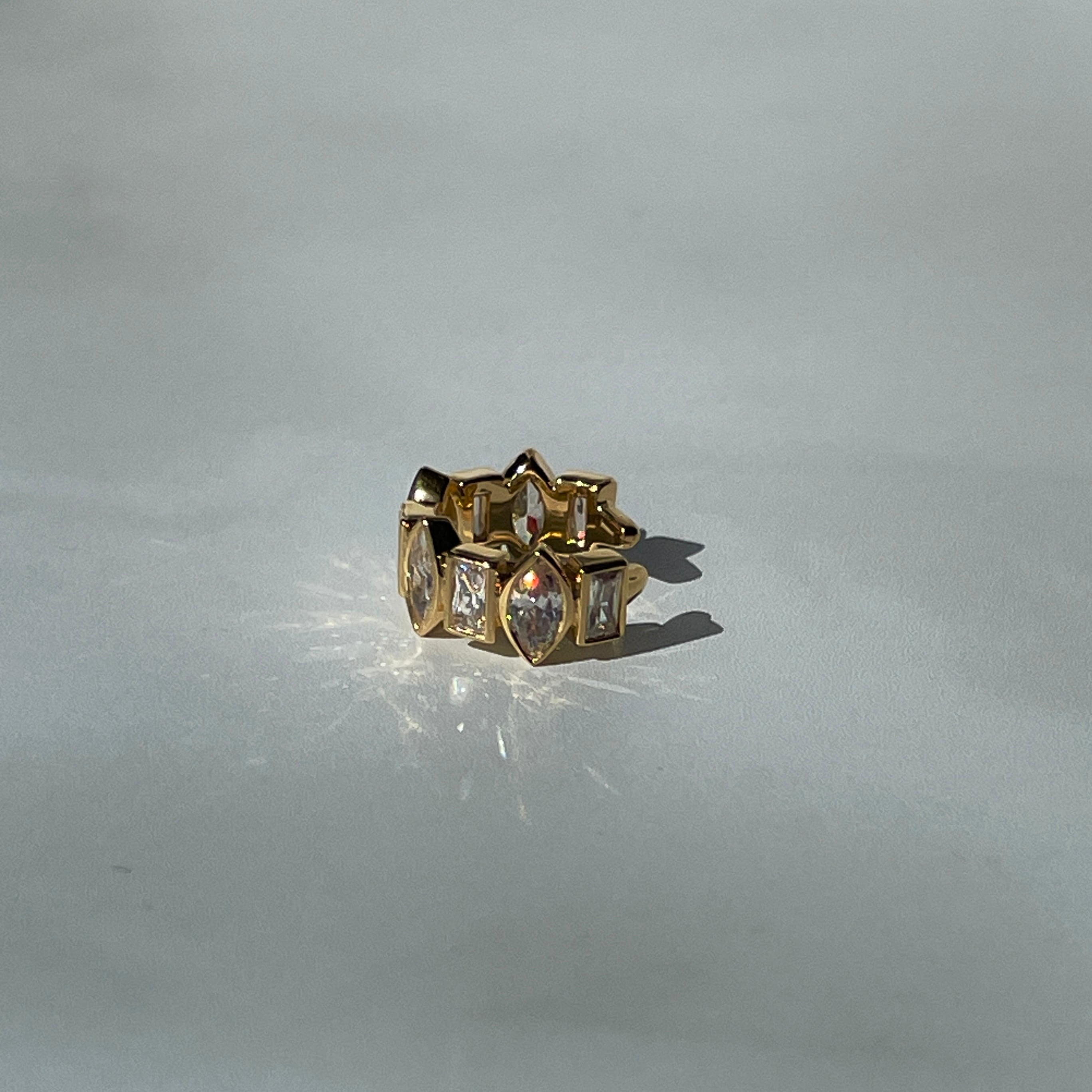 華やかさを演出するUCE-51 Sparkle EarCuff。マーキスカットとバゲットカットのキュービックジルコニアをあしらったデザインが、あなたの耳元を一層輝かせます。片耳用のイヤーカフなので、片方の耳にアクセントを加えることができます。